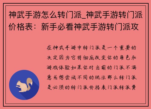 《神仙道2015》是一款拥有众多神仙道元素的RPG手游,新手玩家想要快速提升战力,攻略副本和竞技场,就需要掌握一些秘籍。本文将从多个方面详细阐述神仙道2015新手升级攻略,帮助新手玩家快速提升战斗力。...